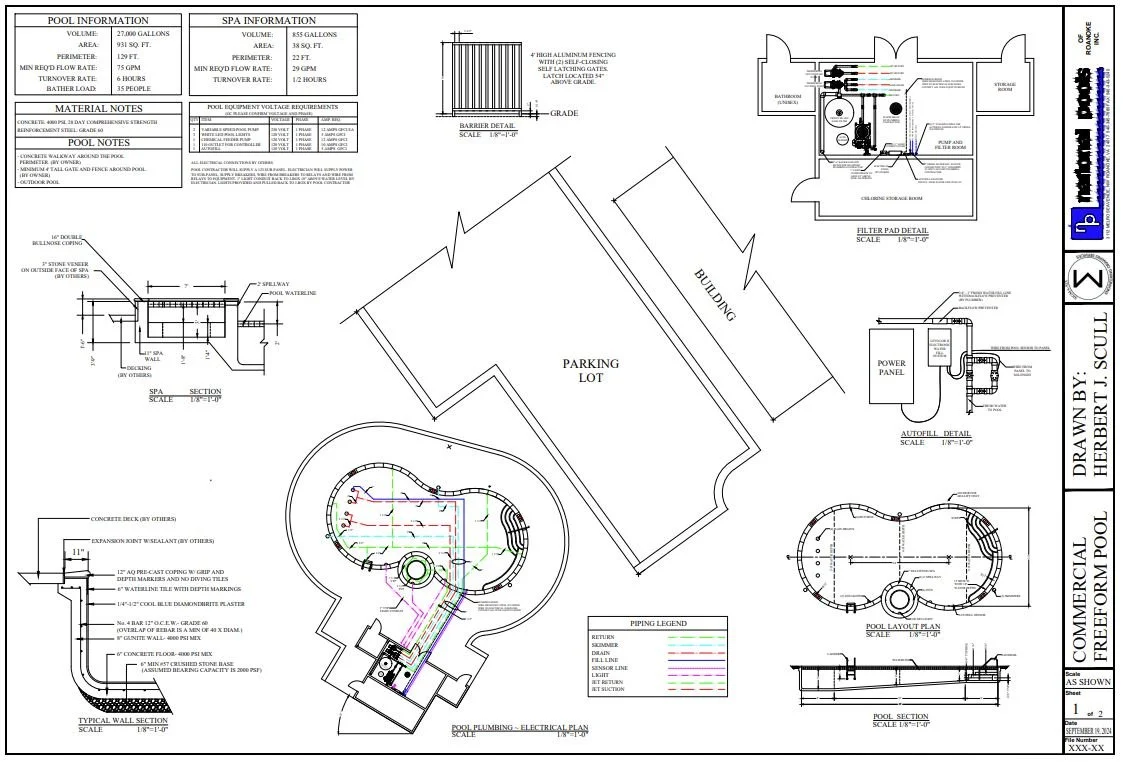 Finding someone to design a residential or commercial rebar gunite swimming pool is not an easy task. The average Architect or Engineer could draw the pool and the space around it but would the design pass code? Secondly, there’s not that many pool companies out there. Often Architect and Engineering Firms reach out to pool manufacturers for consultation work when designing residential or commercial swimming pools. There are a lot of things to adhere to when designing a swimming pool. For example, you have to adhere to slope codes that are tied into the desired depths and lengths of the swimming pool. Is the pool equipment below or above grade? Will it require a valve box? These are only a few of the questions one should consider when buying a swimming pool. When designing a pool, one should have a good understanding of the site layout and construction process to be involved. Sigma Six Engineering Drawing Services can help navigate the client through the process of design, site layout and construction as well as what it takes for permitting, etc. Sigma Six also has established relationships with pool manufacturers in their operating area. If a design is decided upon a contact can be made, the design can be forwarded, and the client can move towards estimating, a proposal and possibly even a contract and getting placed on a construction schedule.